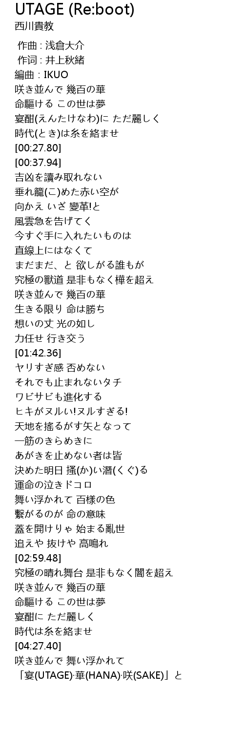 | [04:45.58] | 「宴(UTAGE)·華(HANA)·咲(SAKE)」と |