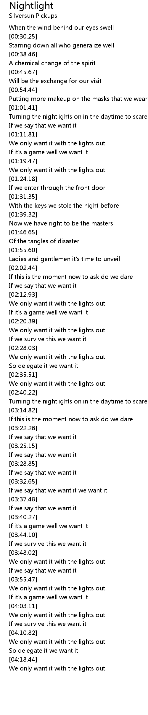 We only want it with the lights out |