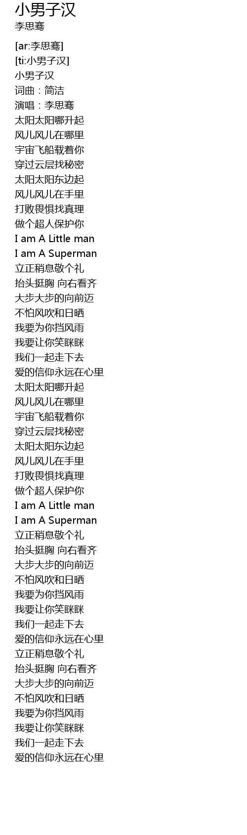 | [00:01.08] | xiǎo nán zǐ hàn |