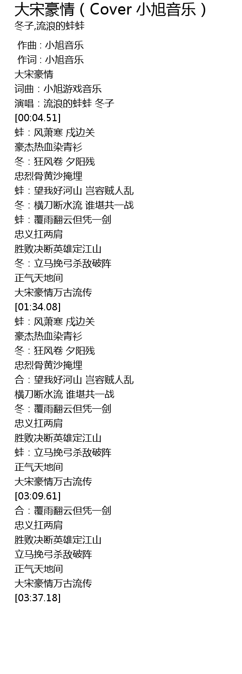 | [01:26.68] | dà sòng háo qíng wàn gǔ liú chuán |