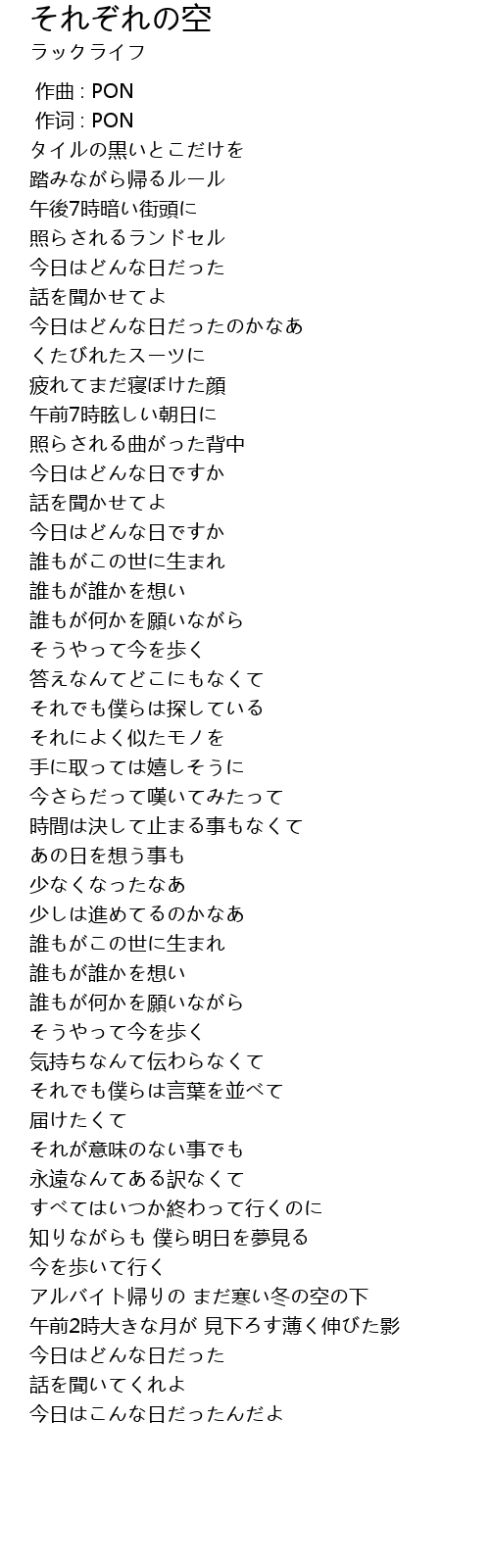 | Song | それぞれの空 |