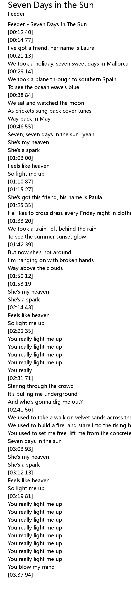 | [02:01.90][01:53.19] | Seven days in the sun, seven days in the sun...sun |