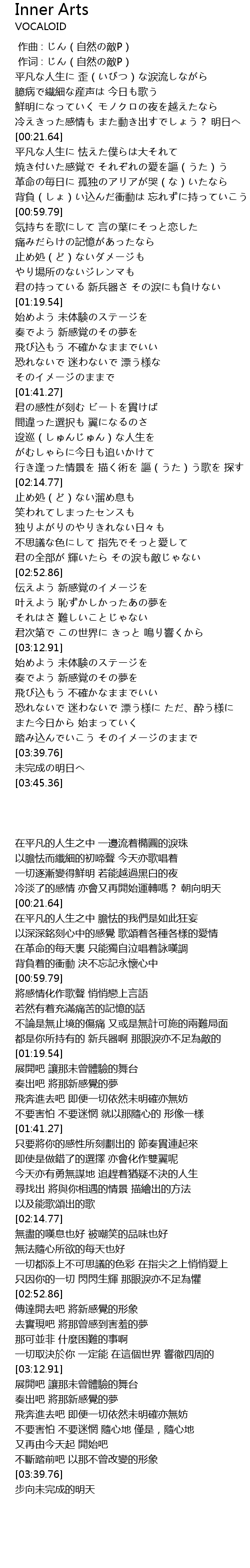 | [00:00.21] | 作词 : じん(自然の敵P) |
