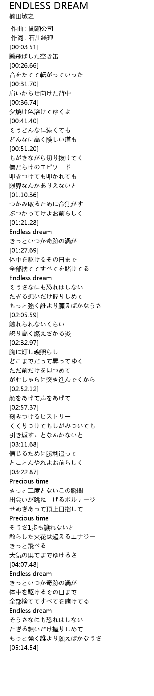 | [04:50.70] | Endless dream |