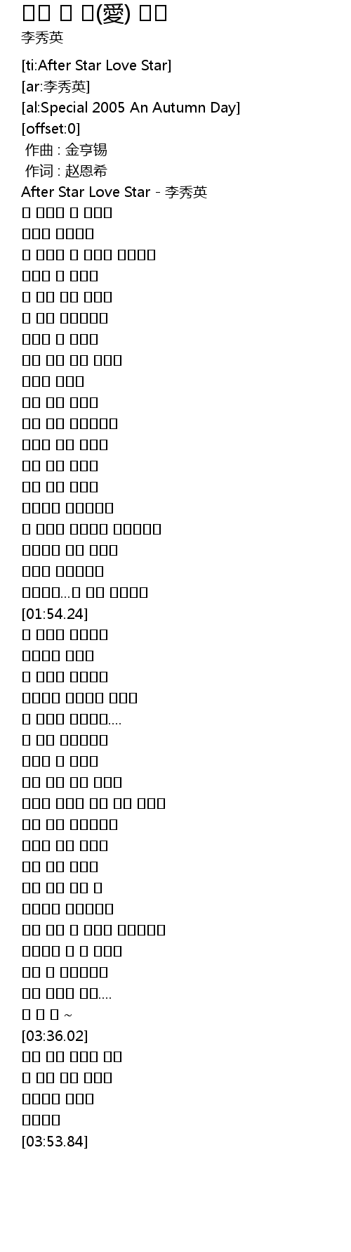 | [00:01.15] | After Star Love Star - 李秀英 |