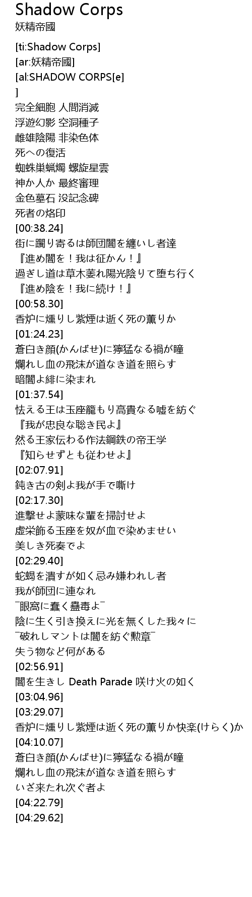 | [02:57.63] | 闇を生きし Death Parade 咲け火の如く |