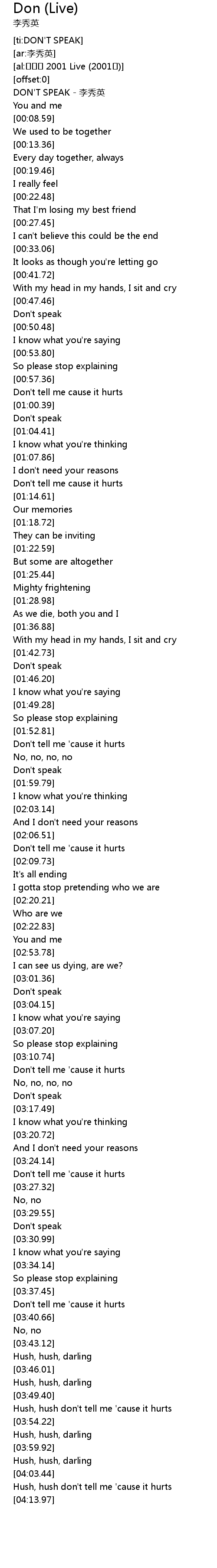 | [00:00.68] | DON'T SPEAK - 李秀英 |