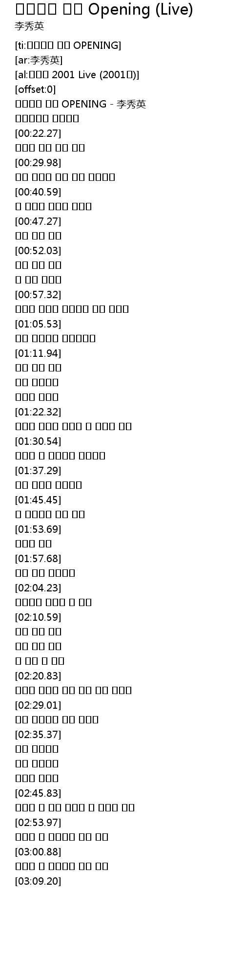 | [00:00.62] | 하얀마음 백구 OPENING - 李秀英 |