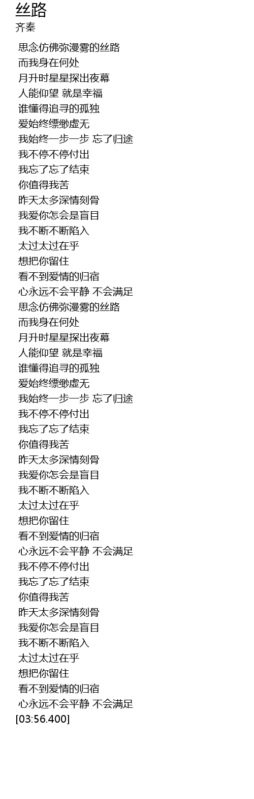 | [01:59.399] | 思念仿佛弥漫雾的丝路 |