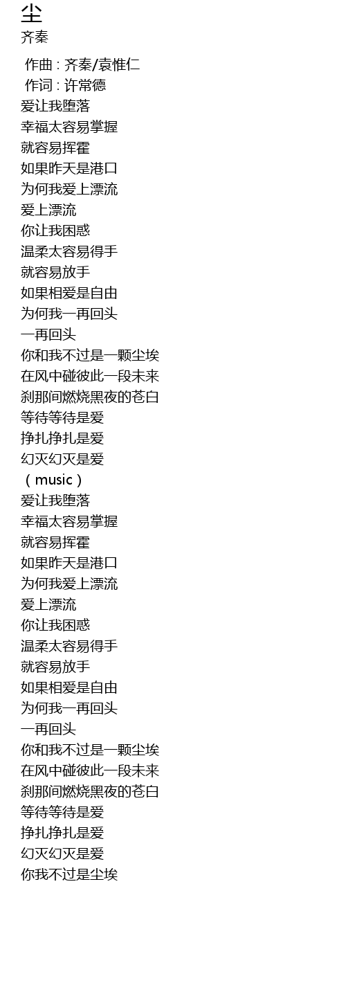| [00:00.00] | 作曲 : 齐秦/袁惟仁 |