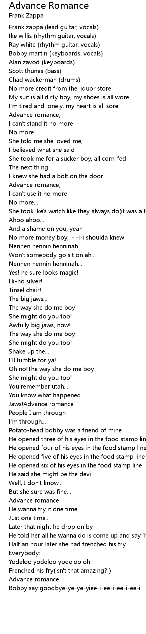 Advance Romance Lyrics