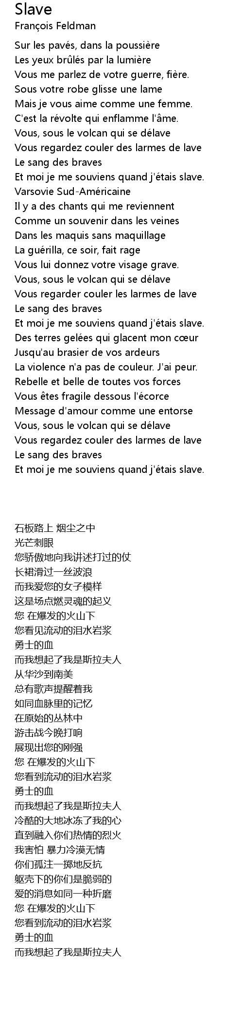 | [02:54.20] | Et moi je me souviens quand j'é tais slave. |