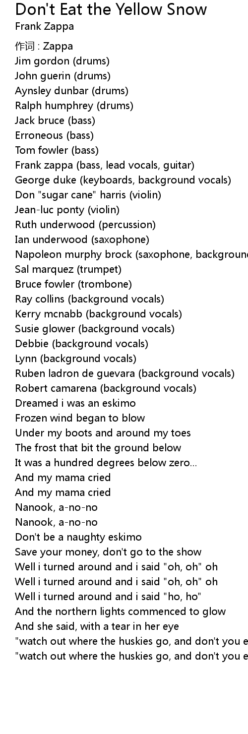 | "watch out where the huskies go, and don't you eat that yellow snow" |
