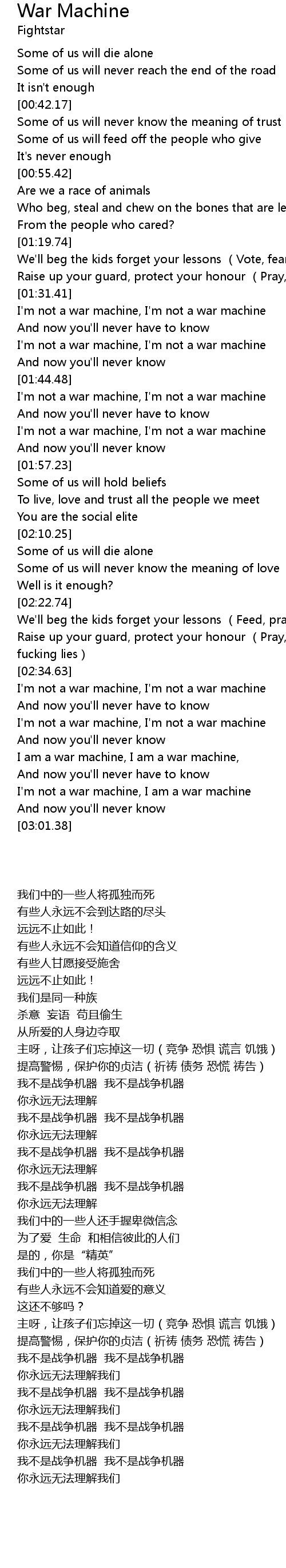 | [02:35.52] | I'm not a war machine, I'm not a war machine |