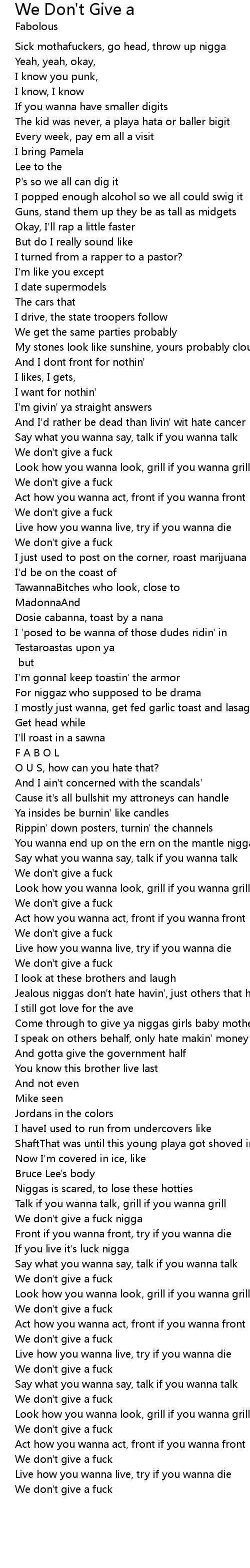 We don't give a fuck nigga |