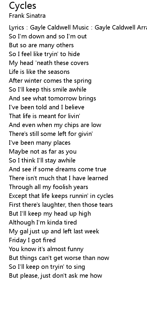 | Except that life keeps runnin' in cycles | |