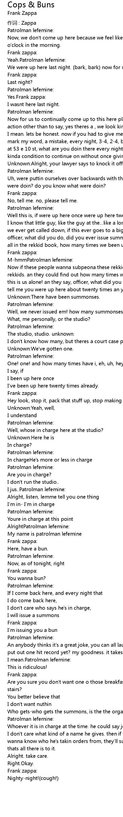 | 作词 : Zappa | |