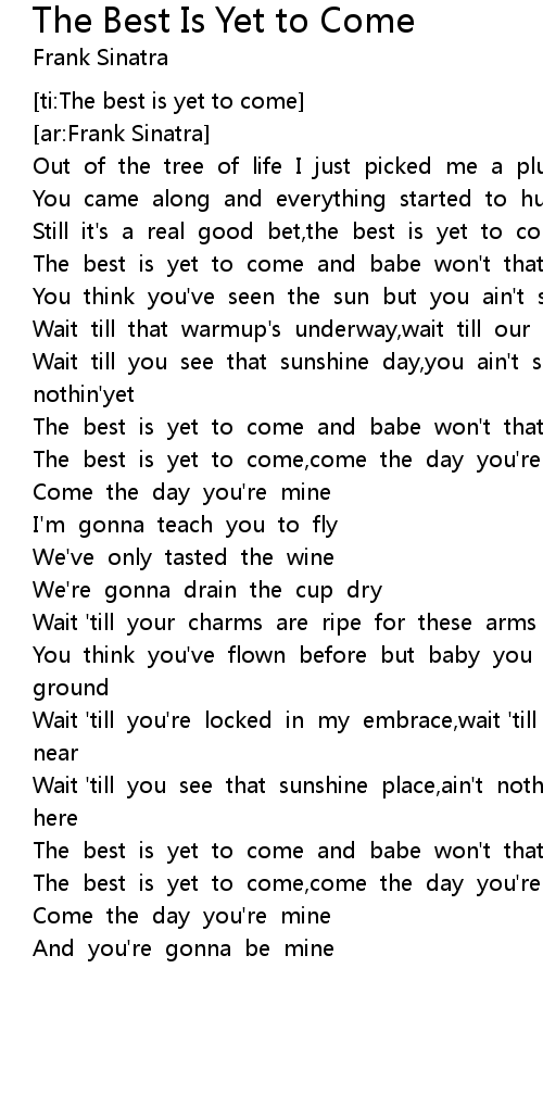 Wait till you see that sunshine day,you ain't seen nothin'yet |