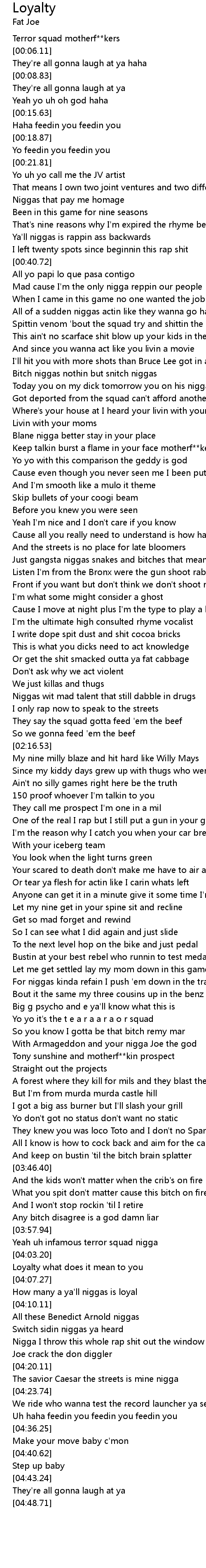 | [03:58.95] | Yeah uh infamous terror squad nigga |