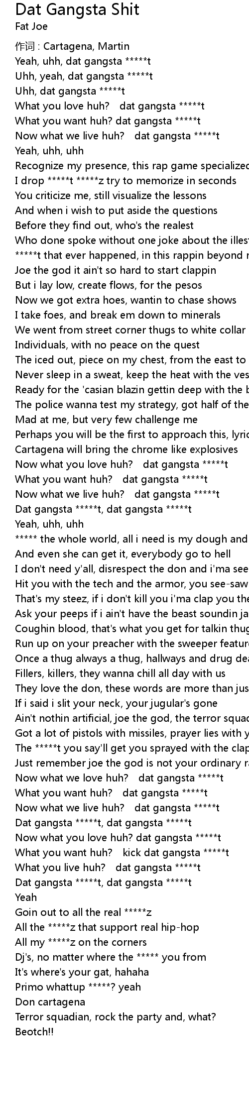 | Ain't nothin artificial, joe the god, the terror squad official | |