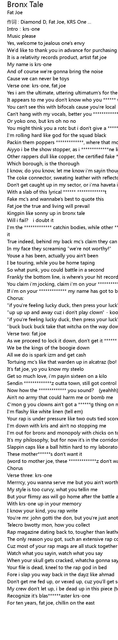 | 作词 : Diamond D, Fat Joe, KRS One ... | |