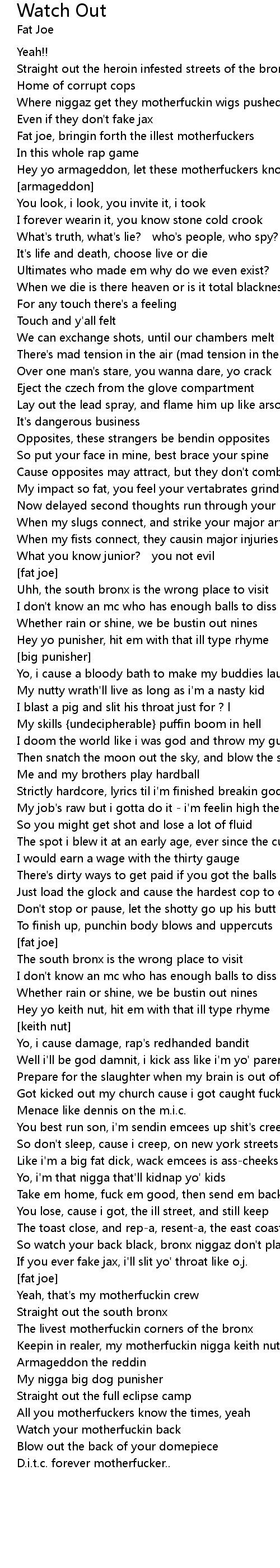 | Strictly hardcore, lyrics til i'm finished breakin god's laws | |