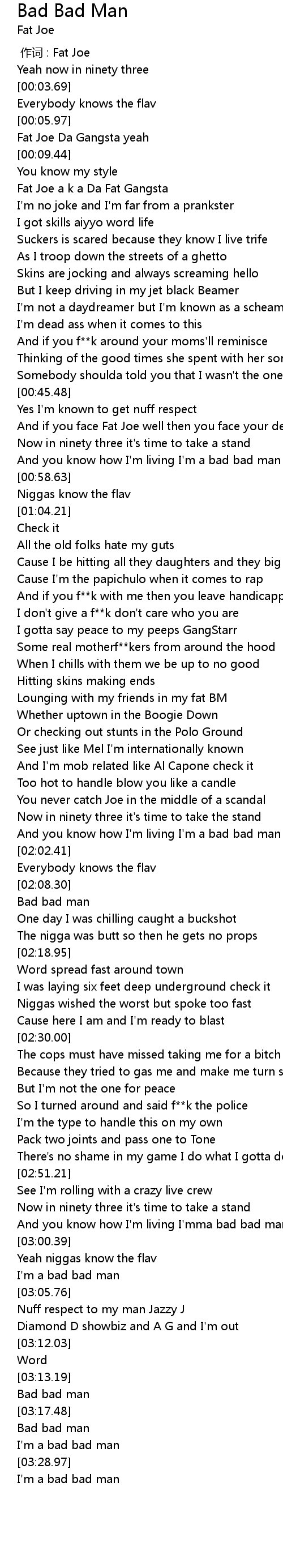 | [00:00.00] | 作词 : Fat Joe |