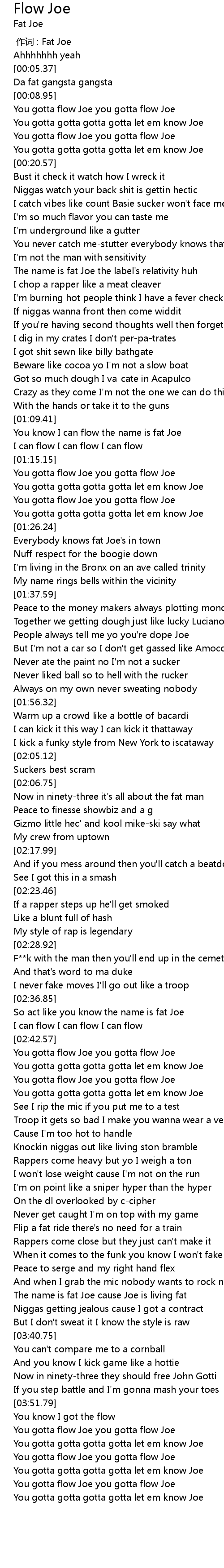 | [01:10.54] | You know I can flow the name is fat Joe |