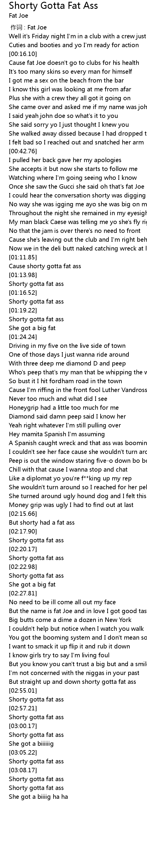 | [02:52.78] | But straight up and down shorty gotta fat ass |