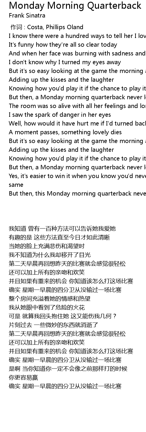 | [01:30.15] | But then, a Monday morning quarterback never lost a game |