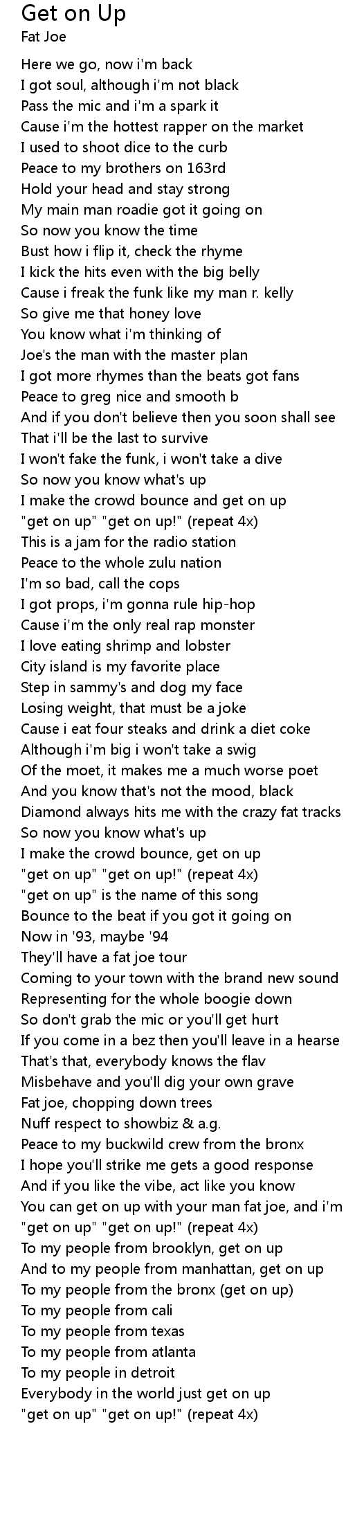 | "get on up" "get on up!" (repeat 4x) |
