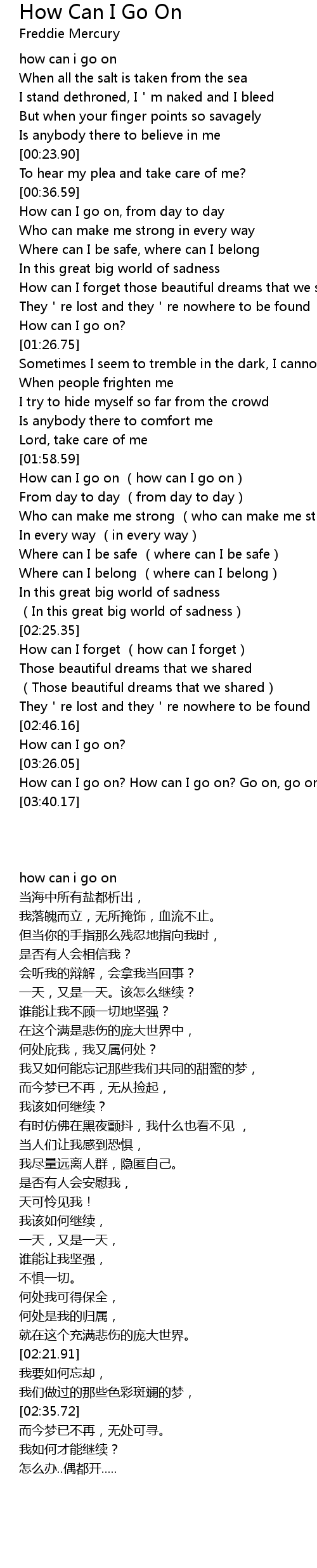 | [02:00.28] | How can I go on how can I go on |