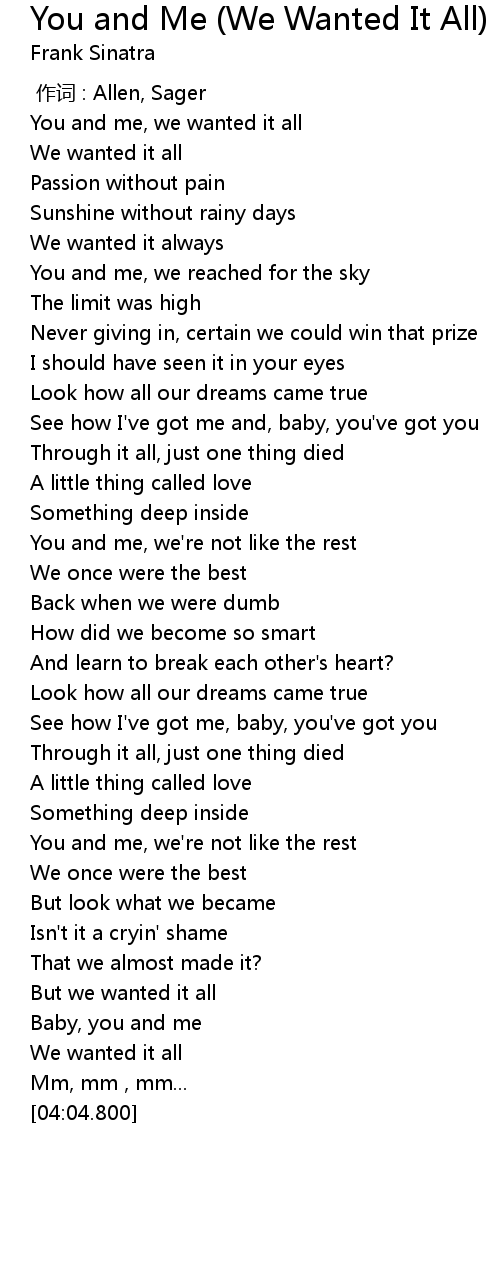 | [01:34.630] | See how I' ve got me and, baby, you' ve got you |