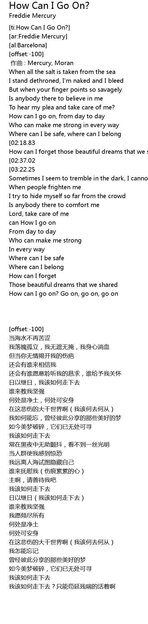 | [03:33.76] | How can I go on? Go on, go on, go on |