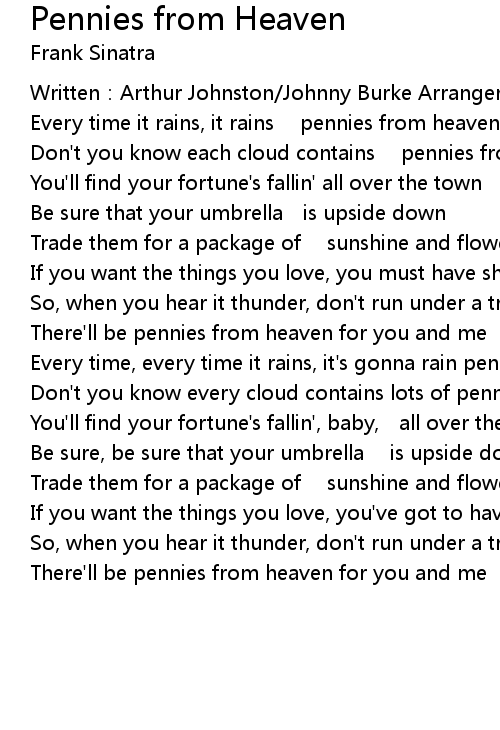 | Every time, every time it rains, it' s gonna rain pennies from heaven | |