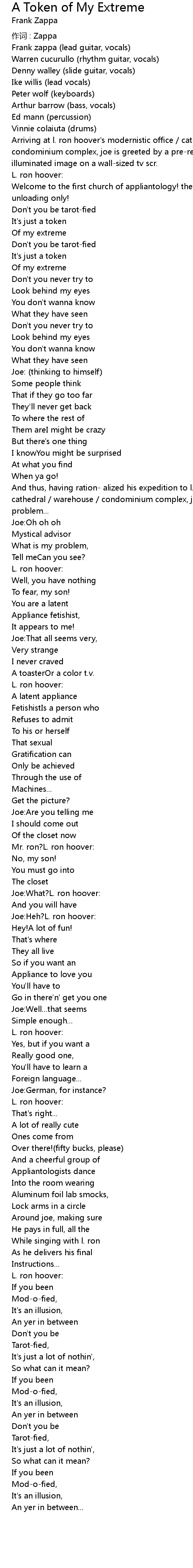 | Frank zappa lead guitar, vocals | |
