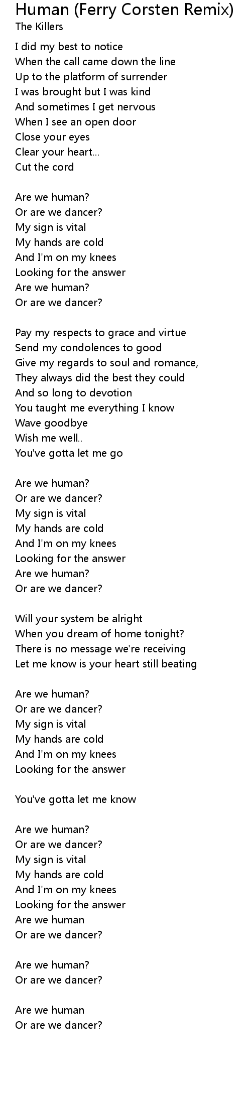 Human (Ferry Corsten Remix) Lyrics