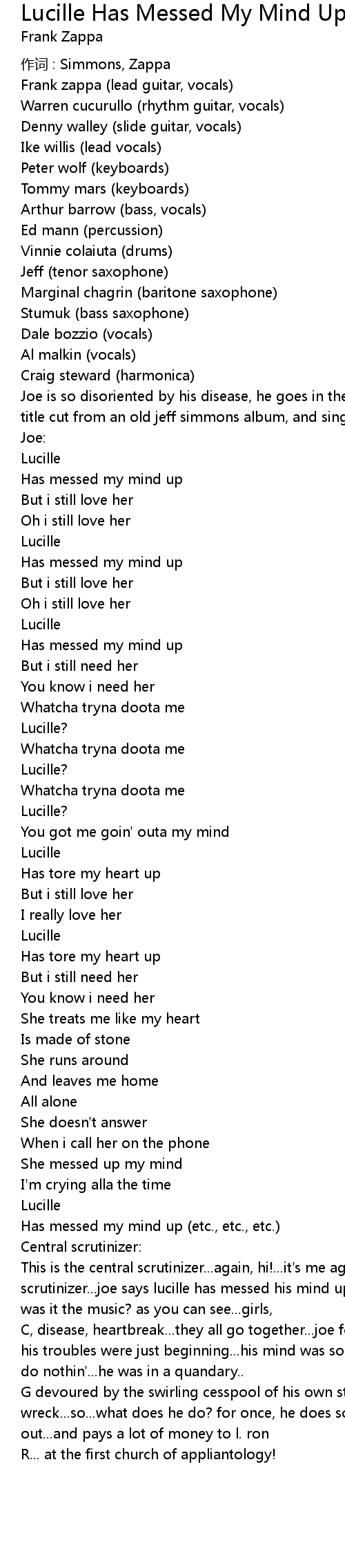 | This is the central scrutinizer... again, hi!... it' s me again, the central scrutinizer... joe says lucille has messed his mind up, but, was it the girl or was it the music? as you can see... girls, | |