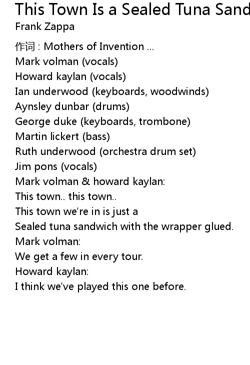 | Song | This Town Is a Sealed Tuna Sandwich (Prologue) |