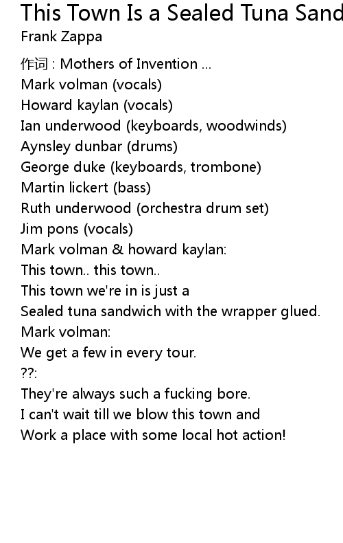 | Song | This Town Is a Sealed Tuna Sandwich (Reprise) |