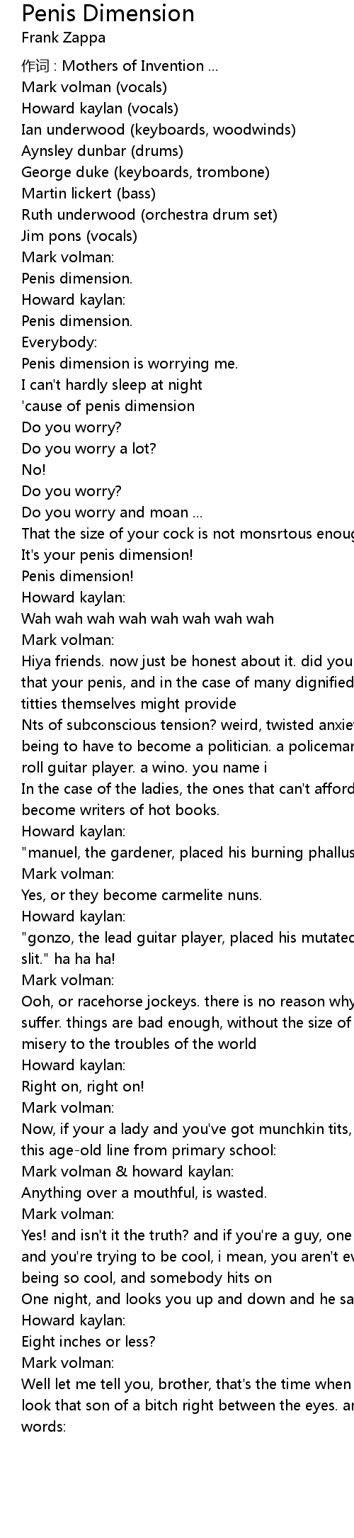 | 作词 : Mothers of Invention ... | |
