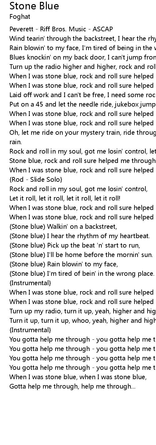 | Stone blue, rock and roll sure helped me through, | |