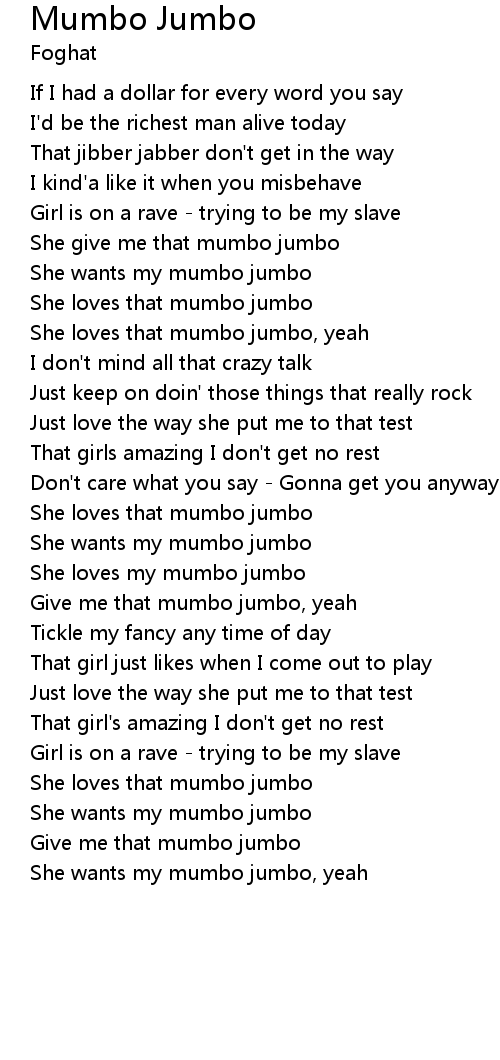 | She wants my mumbo jumbo | |