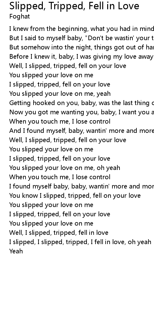 I slipped, I slipped, tripped, I fell in love, oh yeah |