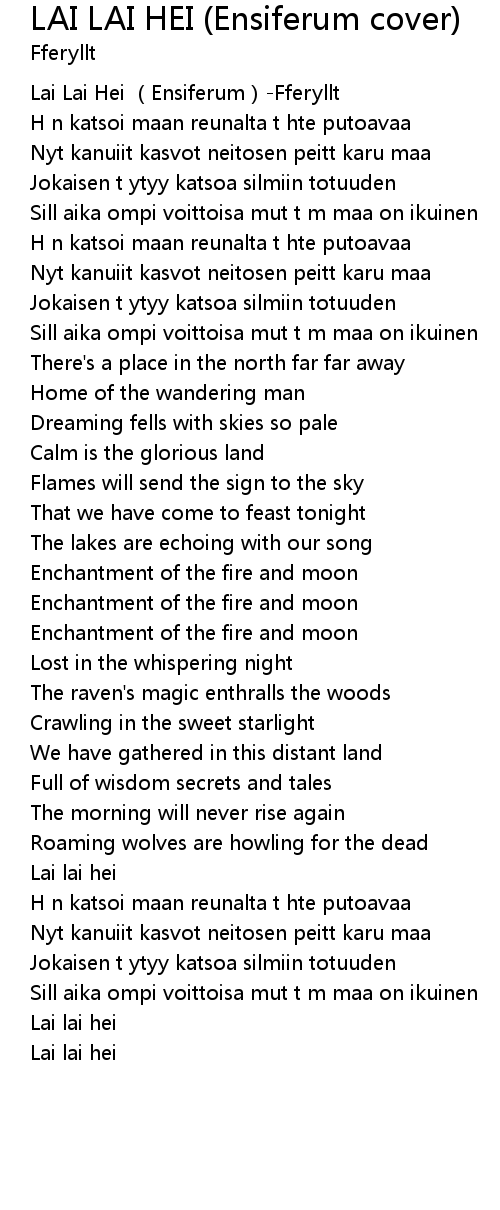 | [00:00.211] | Lai Lai Hei Ensiferum Fferyllt |