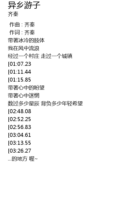 | [00:37.74][01:11.44] | 一个异乡的游子 |