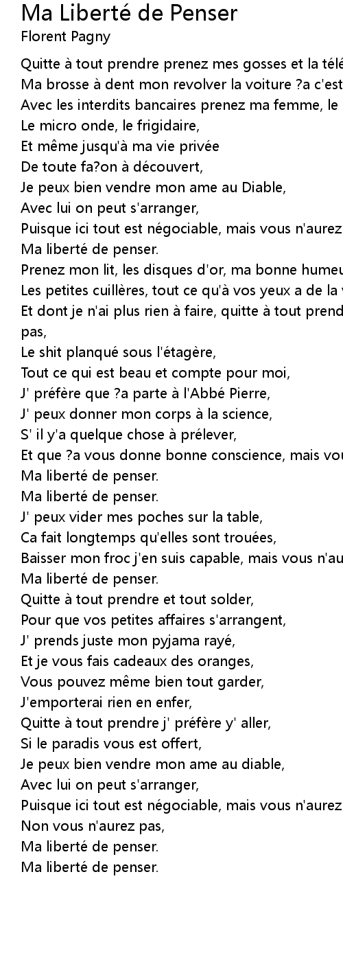 | [01:02.97] | Et dont je n'ai plus rien à faire, quitte à tout prendre n'oubliez pas, |