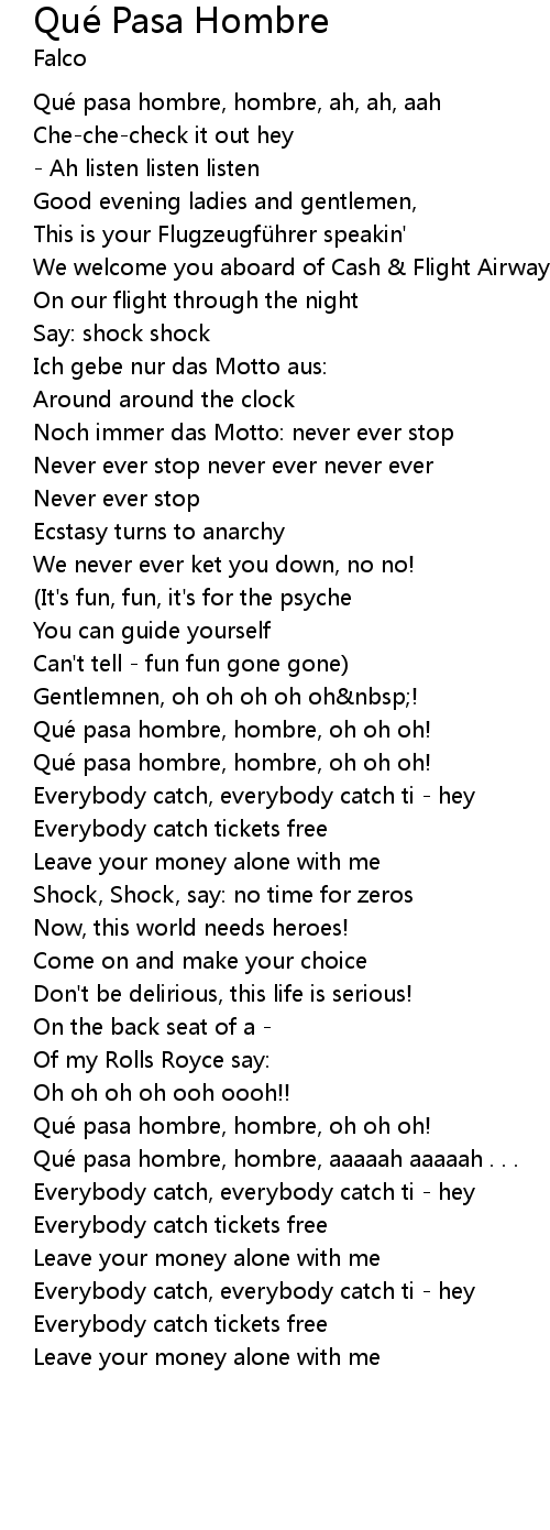 | Qué pasa hombre, hombre, oh oh oh! | |