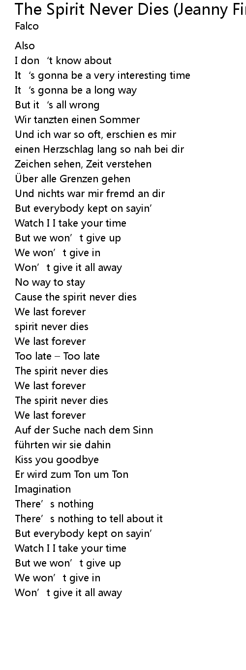 | Cause the spirit never dies | |