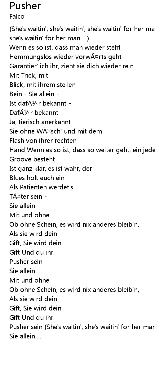 | Pusher sein She' s waitin', she' s waitin' for her man ... | |